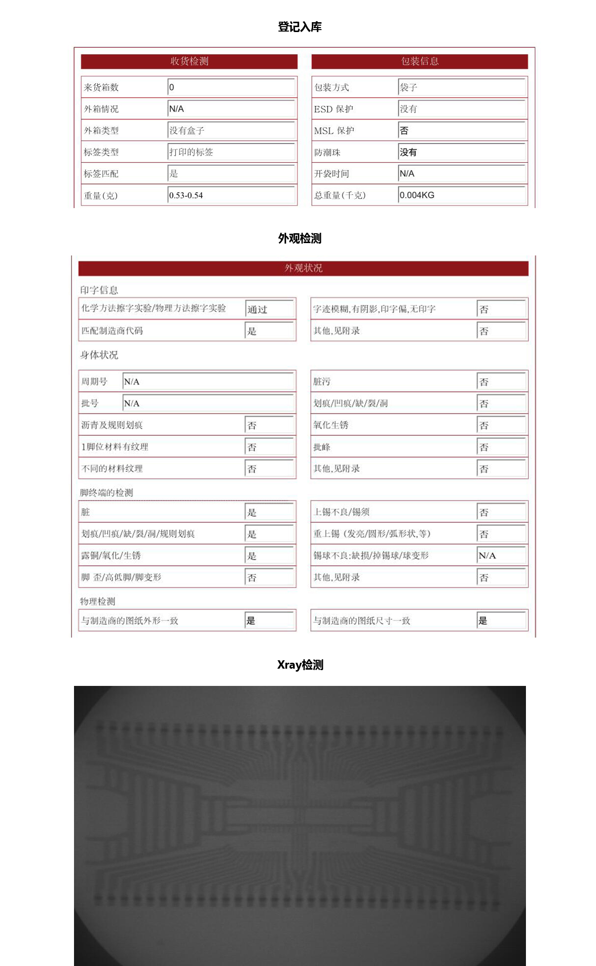 ①入库:来料经检测工程师检测,拍照编号留底